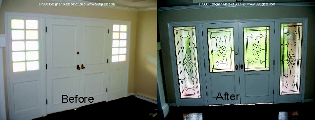 A professional SGO installer will cut out your door, insert your chosen decorative door glass and replace your door with absolutely no mess or inconvenience. The installer can also upgrade your existing side lights (the windows on the side of your door) and the transom window (above your door) with matching decorative glass.